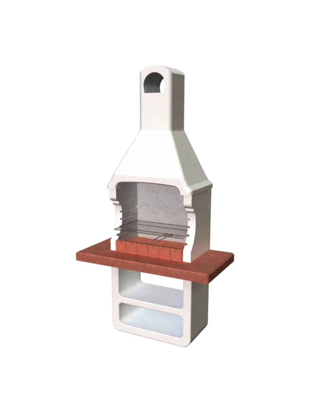 Barbecue in calcestruzzo alleggerito, dotato di focolare con griglia cromata regolabile su quattro altezze. Il piano di lavoro e il SAFE GRILL sono colorati nell'impasto, mentre il resto può essere personalizzato con il rivestimento al quarzo SAROM. Facile da montare, il piano di lavoro misura 114 cm, e la griglia di cottura ha una larghezza di 67 cm.