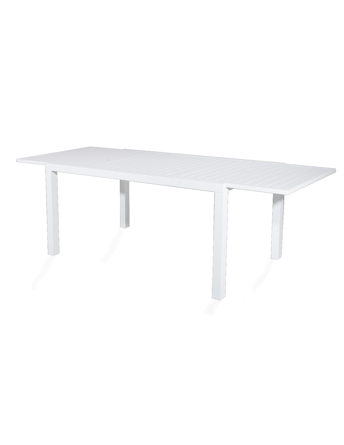 Tavolo allungabile in alluminio verniciato con top a doghe. Apertura UP/DOWN. Da assemblare.
